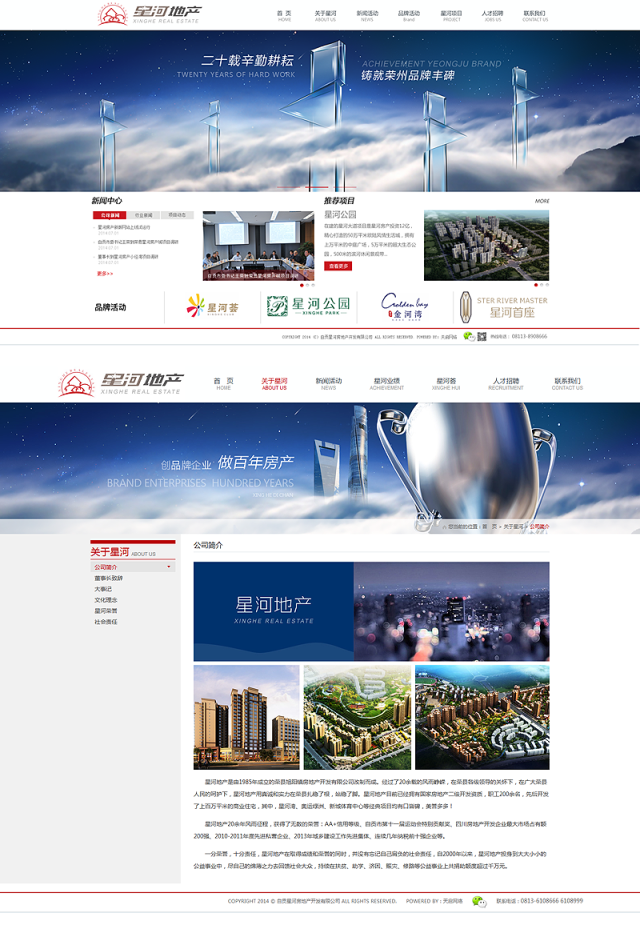 星河地產(chǎn)是由1985年成立的榮縣旭陽鎮(zhèn)房地產(chǎn)開發(fā)有限公司改制而成。經(jīng)過了20余載的風(fēng)雨崢嶸,在榮縣各級領(lǐng)導(dǎo)的關(guān)懷下,在廣大榮縣人民的呵護下,星河地產(chǎn)用真誠和實力在榮縣扎穩(wěn)了根,站穩(wěn)了腳。星河地產(chǎn)目前已經(jīng)擁有國家房地產(chǎn)二級開發(fā)資質(zhì),職工200余名,先后開發(fā)了上百萬平米的商業(yè)住宅,其中,星河灣、奧運綠洲、新城體育中心等經(jīng)典項目均有口皆碑,美譽多多!