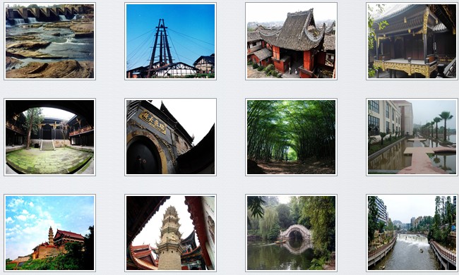 城區(qū)內(nèi)現(xiàn)有200余座風格各異的明清、民國時期建筑,被專家稱之謂川南民居建筑藝術博物館;這里有史載開鑿最早古鹽井之一的大公井遺跡;有被譽為世界井礦鹽奇跡——高產(chǎn)穩(wěn)產(chǎn)天然氣百年不衰的千米深井“東源井”;有現(xiàn)存天車最高、依然保持生產(chǎn)的鹵氣雙產(chǎn)的金流井;有重灘、艾葉、平橋、中橋和五皇洞等五座堰閘及鹽運碼頭等水、陸路古鹽道遺跡和遺存,構成了世界上最早的梯級運輸水利工程;有獨具各地方特色的南華宮、湖廣廟、貴州廟等數(shù)十座會社宗祠;有曾作為榮縣貢井分縣縣丞駐地的陳家祠堂;有依照紅樓夢大觀園建造的胡氏鹽商大宅;有清末所設的中國第一批郵政局遺址;有始建于唐代的佛教摩崖石刻——千佛巖;有難得一見的河中佛石——菩薩石;有吳玉章、謝奉琦、雷鐵崖等革命志士、歷史名人曾經(jīng)求學的旭川書院;還有名震川南,峨眉朝山第一寺的古剎天池禪寺。