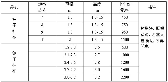 自貢市樹豐商貿有限責任公司桂花樹價格表