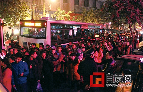 百貨大樓免費公交乘車點,游客在現(xiàn)場排起了長龍