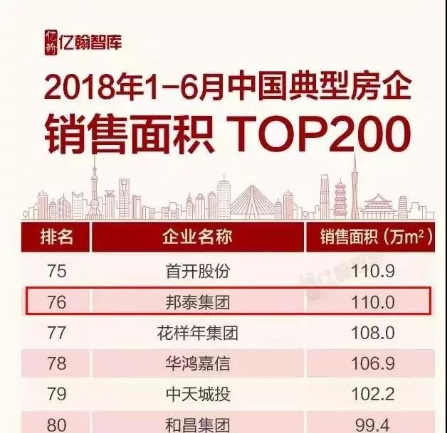 再傳喜訊︱邦泰穩(wěn)居2018年上半年中國(guó)房企銷售排行榜百?gòu)?qiáng)!