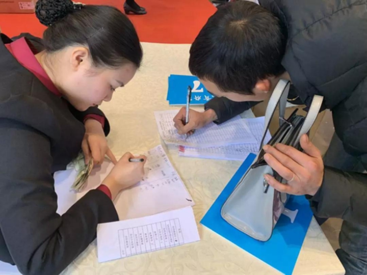/ 以鉅惠競拍到家電的人們認真登記著信息