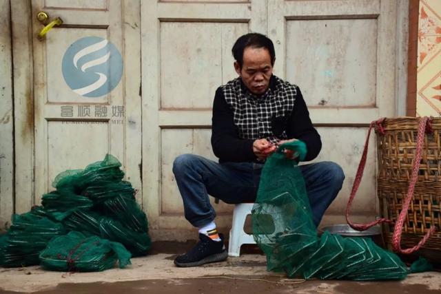 坐在家門口整理漁網(wǎng)的大叔