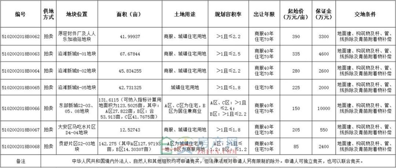 自貢市多宗國有建設(shè)用地使用權(quán)拍賣出讓公告(有圖有真相)