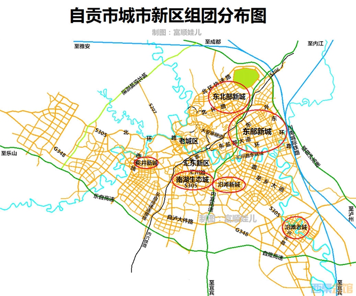 最近發(fā)現(xiàn),很多市民還搞不清楚,自貢的各個(gè)城市新區(qū)的位置和關(guān)系,甚至還有人認(rèn)為東北部新城就是東部新城,為了讓大家更清楚自貢的城市分區(qū),西秦網(wǎng)友“富順娃兒plus”自制了一張?jiān)谧载暢鞘幸?guī)劃中的各個(gè)新區(qū)位置圖,給大家普及自貢的各個(gè)新城,快來看看吧!