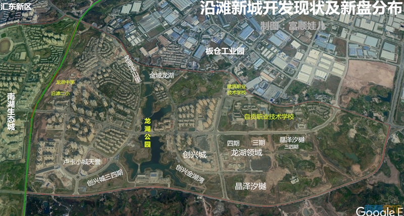 沿灘新城又以錦城大道為界,以西為一期、以東為二期,目前一期僅東北角尚有部分土地待開發(fā),沿灘新城開發(fā)中心已轉(zhuǎn)移至二期,目前的新盤有盧卡小城天譽(yù)、創(chuàng)興城、龍湖淺山里、金域龍湖、龍湖領(lǐng)御和晶澤汐樾。沿灘新城雖與南湖生態(tài)城僅一路之隔(內(nèi)宜高速為界),但一個(gè)是區(qū)級(jí)城市新區(qū),一個(gè)是市級(jí)城市新區(qū),一個(gè)是沿灘區(qū)轄區(qū),一個(gè)是高新區(qū)轄區(qū)。