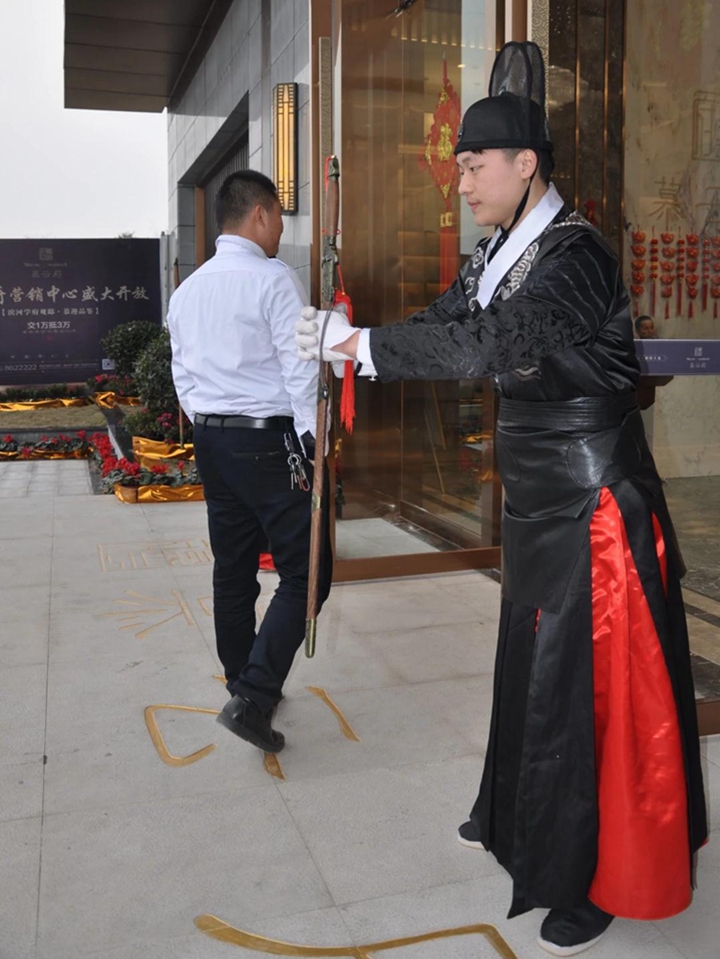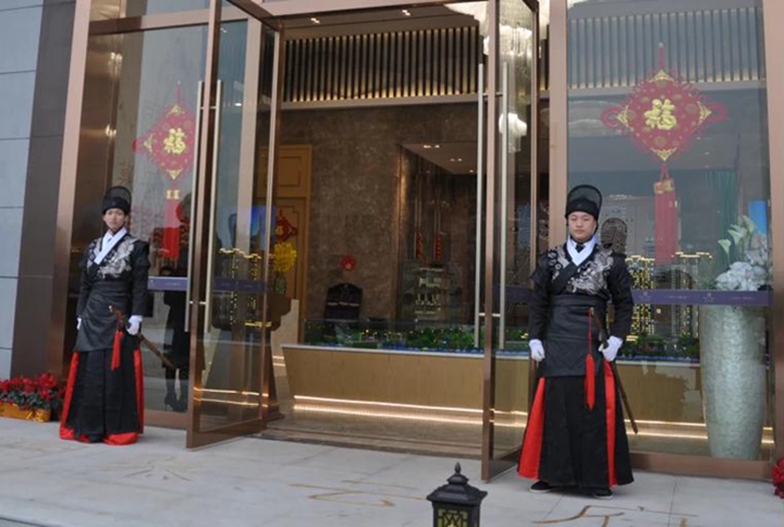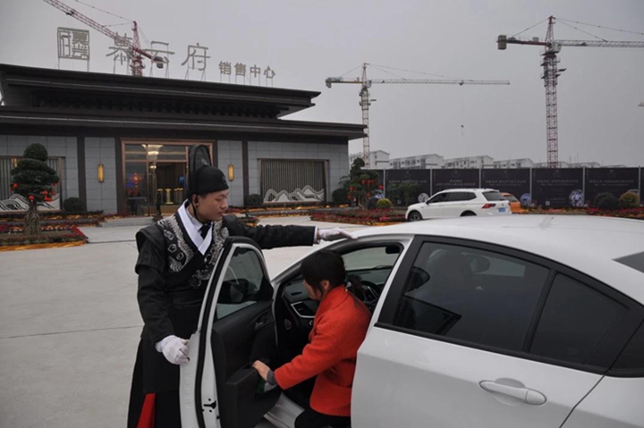 世高物業(yè)-專為慕云府定制的“錦衣衛(wèi)”特色服務(wù),儀仗隊身著飛魚服,腰佩繡春刀,肩負(fù)著守衛(wèi)、接待等一應(yīng)事務(wù),尊崇中盡顯貴族威儀。
