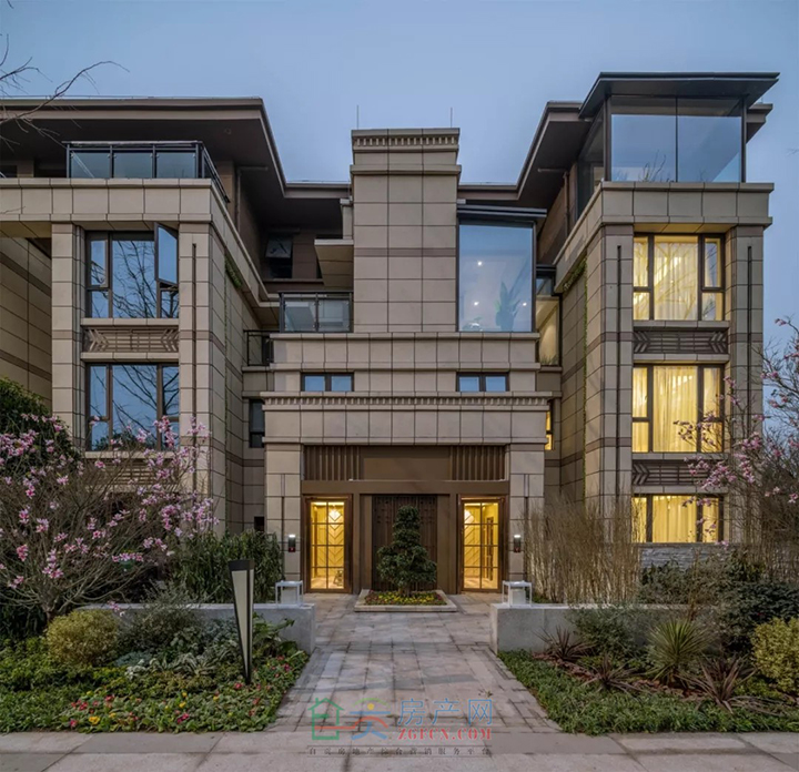 由簡(jiǎn)潔的幾何線條勾勒出完美的天花,庭院引入的開(kāi)闊視野,配以精致的藝術(shù)吊燈、淺色的背景墻與地毯來(lái)提亮空間,巧妙地打造了室內(nèi)的層次感,營(yíng)造“別業(yè)居幽處,到來(lái)生隱心”的美妙氛圍。