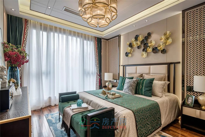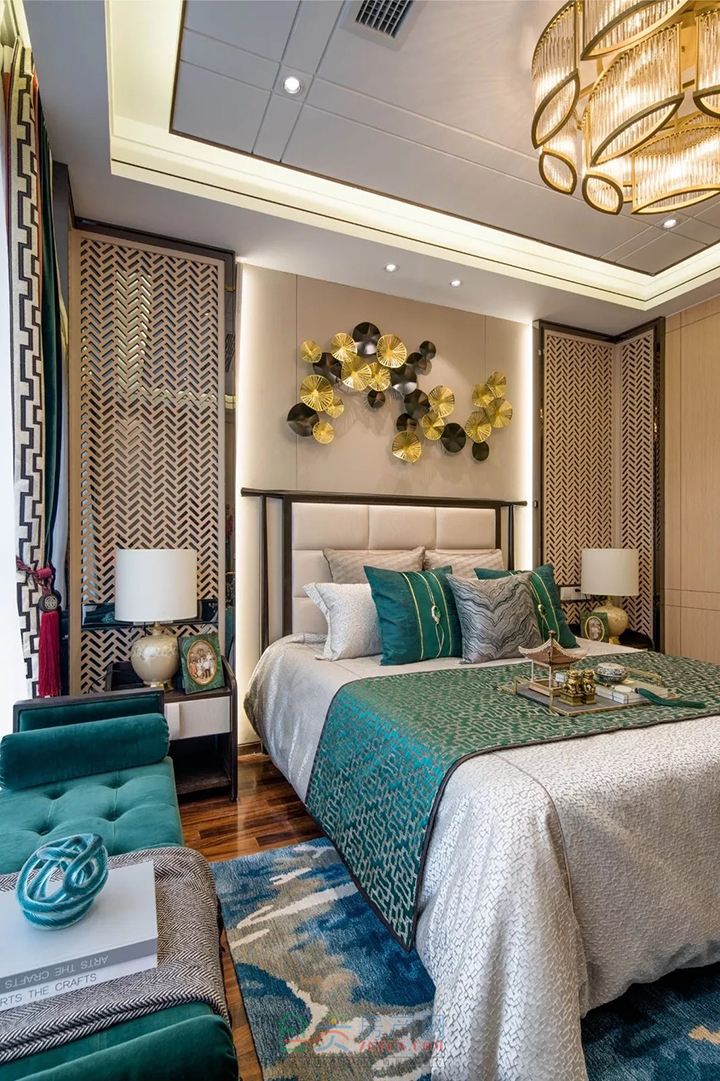 長(zhǎng)輩房沿襲整體風(fēng)格,不同材質(zhì)相融相生。富有靈氣的手繪藝術(shù)掛畫再次點(diǎn)題,在中式床頭燈的映襯下,盡顯清雅與平和。色彩與形式無(wú)一不在提示著東方人文精神的傳承與演變,以豐富的細(xì)節(jié)展現(xiàn)出低調(diào)、藝術(shù)的高尚生活品位。