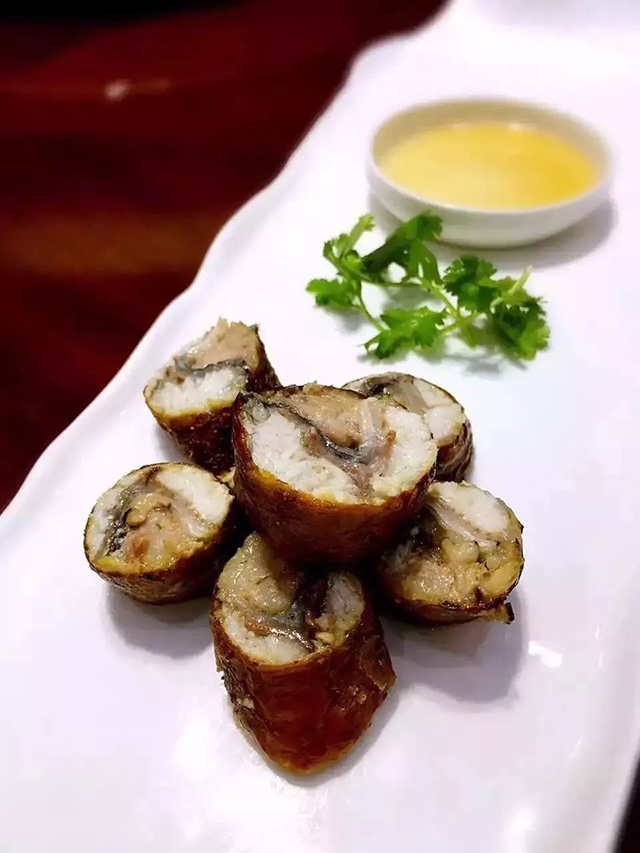 我吃過這款龍穿虎肚,現(xiàn)在還能記得起鰻魚的細(xì)膩,豬腸的微微抵觸感,在這之前,我從來沒有想象過,鰻魚塞進(jìn)豬的直腸,那是一種怎樣的感受。清雅,馥郁,莊重,在許多地方,豬大腸是人們喜歡的食物,但是總覺得有點不上臺面,但是在潮汕,這是“硬菜” 猶如當(dāng)陽橋頭一聲吼,喝斷橋梁水倒流。