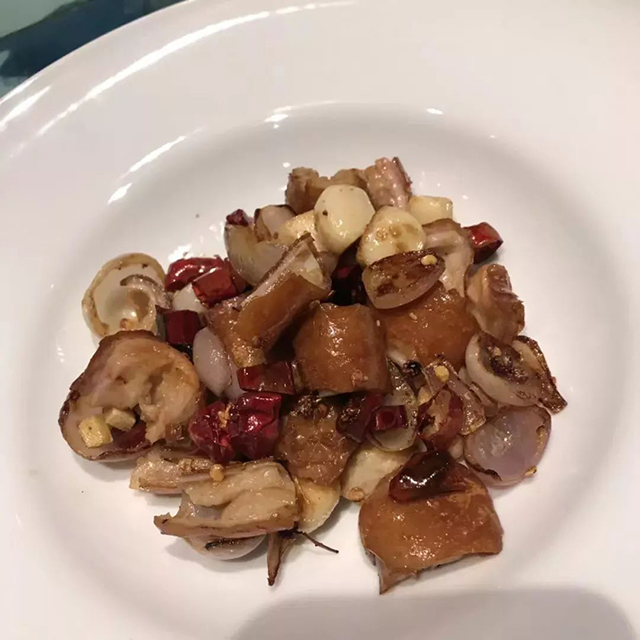 兩三天吃了幾十種肥腸,我以為把四川肥腸吃透了,四川大食客二毛偷偷跟我說,你們吃的這些肥腸都是俗品,最多是上品,在四川,最極品的肥腸做法是——軟炸板指。