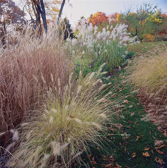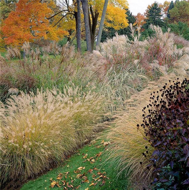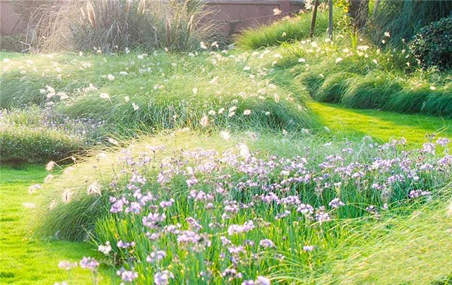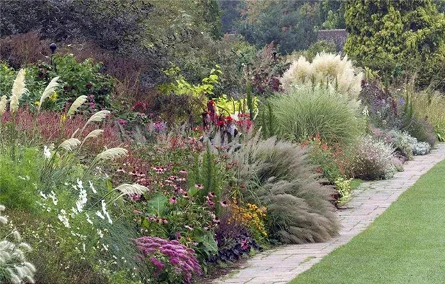 根據(jù)株高,觀賞草可分為矮、中高、高型。矮型常用于花境或道路鑲邊植物,中高型常以叢植方式配植,高型常密植且用以分割空間或用作背景。