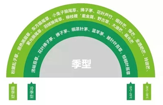 根據(jù)其所適應(yīng)的不同氣候溫度,按季型可分為冷季型與暖季型。