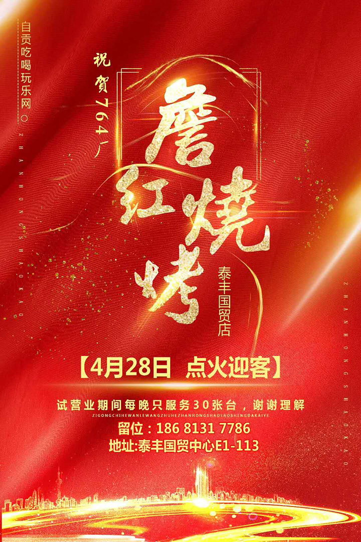 祝賀764廠【詹紅燒烤】泰豐國(guó)貿(mào)中心店 4月28日,點(diǎn)火迎客!