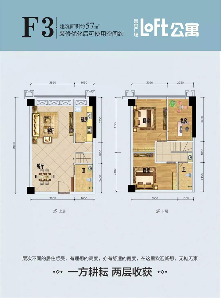 F3每層面積約57㎡,共約450㎡,占總面積得10%。