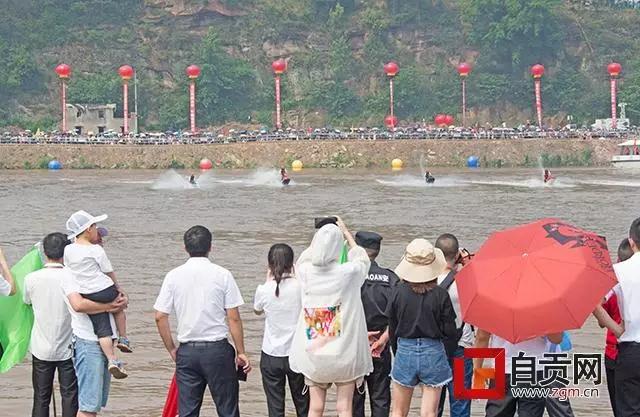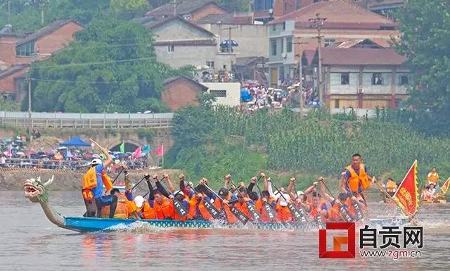 龍舟競渡已成為端午的傳統(tǒng)民俗活動之一,本次競賽的賽道分為200米和500米。上午11點,隨著發(fā)令槍響,龍舟比賽正式拉開帷幕,彩燈世界隊、方特王國隊、老鹽場隊、燊海井對等8支龍舟競賽隊出現(xiàn)江中,開始了一場速度與激情的角逐。在鼓點的指揮下,隊員們整齊有力地劃動木槳,劈波斬浪,龍舟似蛟龍出水,破浪前行,兩岸的市民紛紛加油鼓勁。