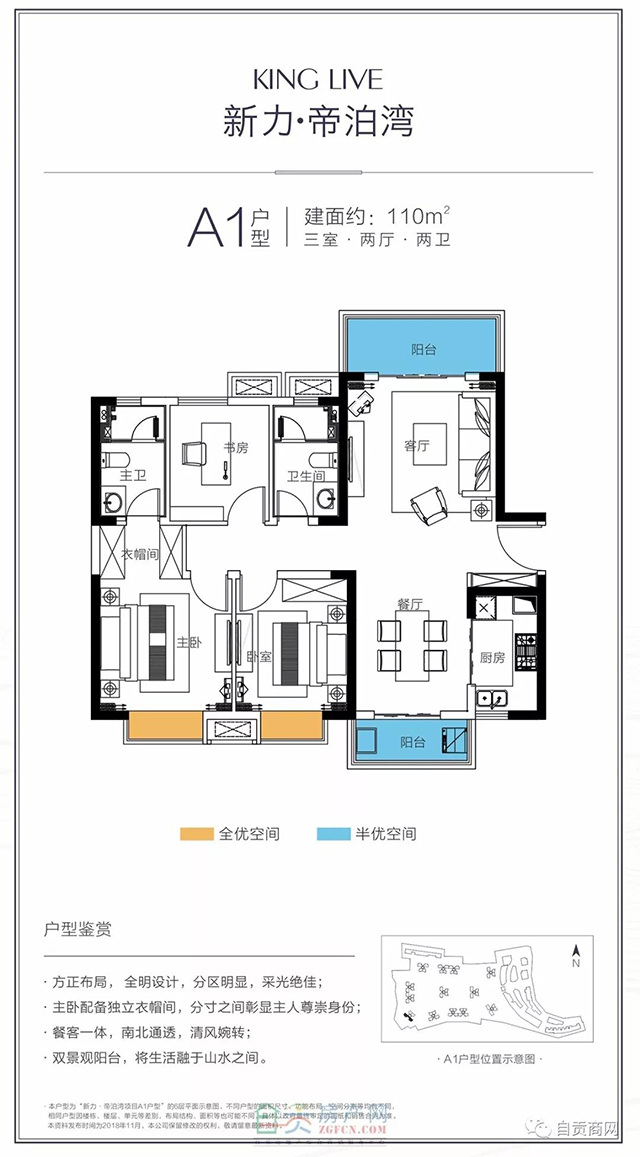 1、三室兩廳:A1建筑面積110㎡。
