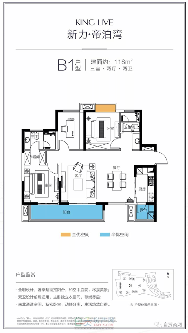 1、三室兩廳:B1建筑面積118㎡。