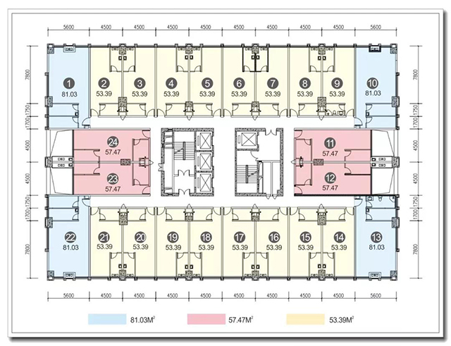 A每層面積約854㎡,共約15370㎡,占公寓總面積得60%。