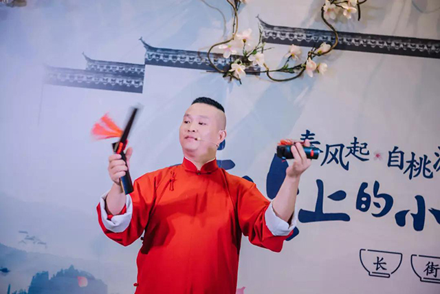 隨后的舞臺上,還有小鎮(zhèn)特意為家人們準(zhǔn)備的相聲表演、茶道表演。嬉、笑、怒、罵之間,這些擁有數(shù)百年歷史的傳統(tǒng)藝術(shù)形式,以不同的方式解讀人生百態(tài)。
