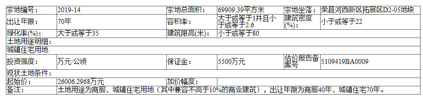 2020年1月3日,自貢土地市場迎來新年第一拍,榮縣河西新區(qū)拓展區(qū)D2-05地塊拍賣會在榮縣建筑和公共資源交易中心舉行。而這次的結(jié)果也沒有讓大家失望,在東部新城勢頭強勁的碧桂園再度發(fā)力,250萬元/畝總價約2.6億元斬獲104畝榮縣河西新區(qū)拓展區(qū)D2-05地塊樓面價:1442元/㎡,為深耕自貢再下一城。