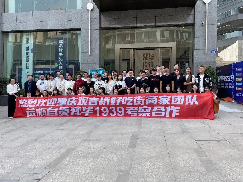 2022年4月12日,重慶觀音橋好吃街的40余名商戶一早便出發(fā)來自貢梵華1939進行考查合作。