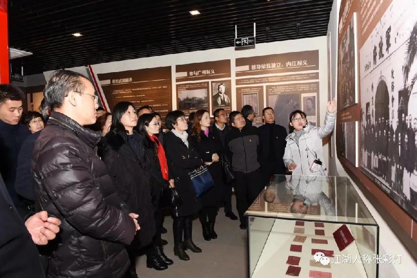 在新落成的吳玉章陳列館為參觀團(tuán)隊(duì)做講解