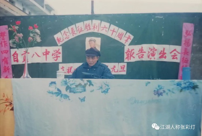 1996年在自貢市第八中學(xué)給師生講述紅軍長征的故事。